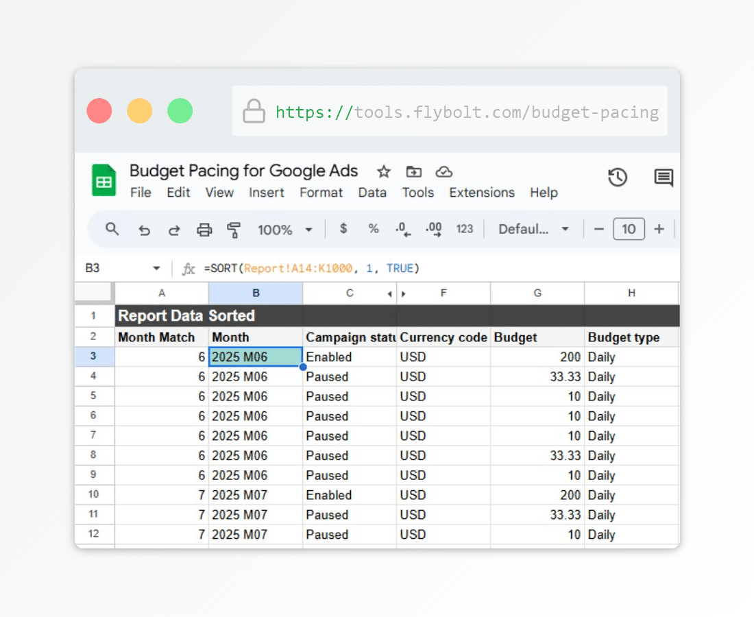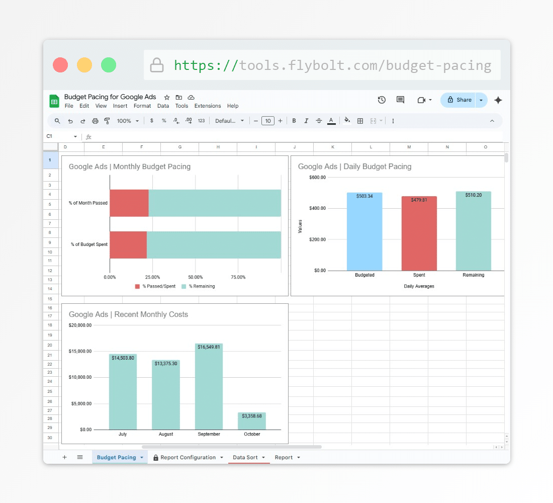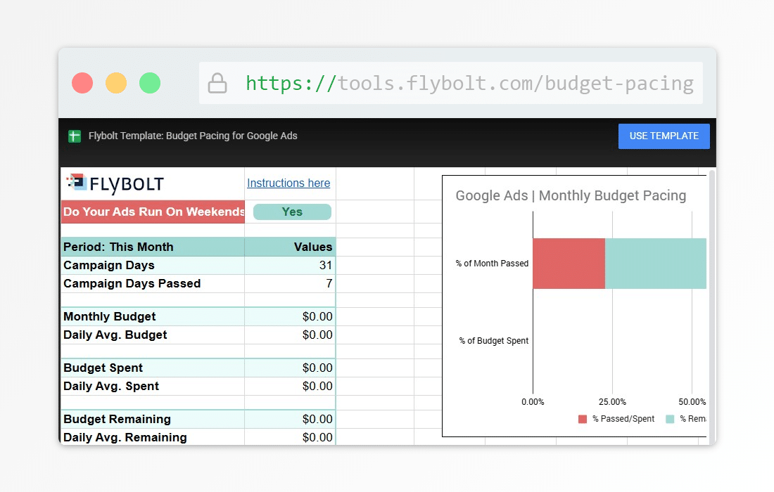 - Click the button above or this link to open the template preview: https://tools.flybolt.com/budget-pacing